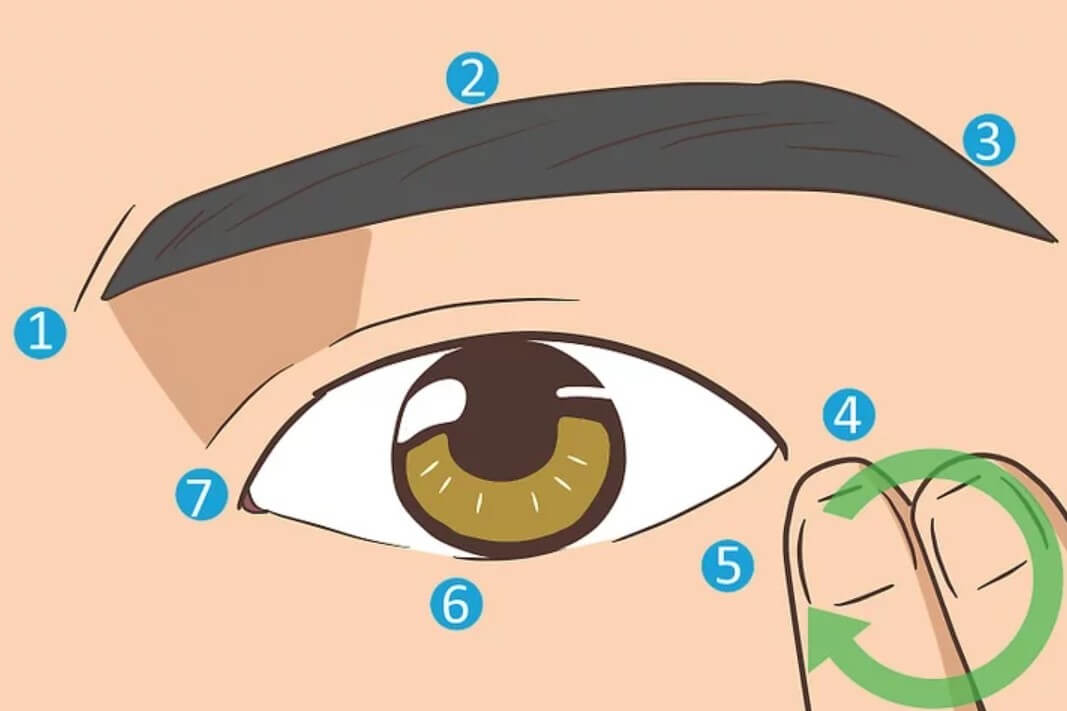 아래 그림을 따라 각 부위를 5~10초 정도 원을 그리며 부드럽게 마사지를 하면 됩니다. 모든 부위를 지압했다면 처음부터 다시 2분 동안 마사지를 해주면 됩니다. 이런 지압법은 혈액순환을 도와주는 동시에 안구를 촉촉하게 해 주어 경련을 없애준다.