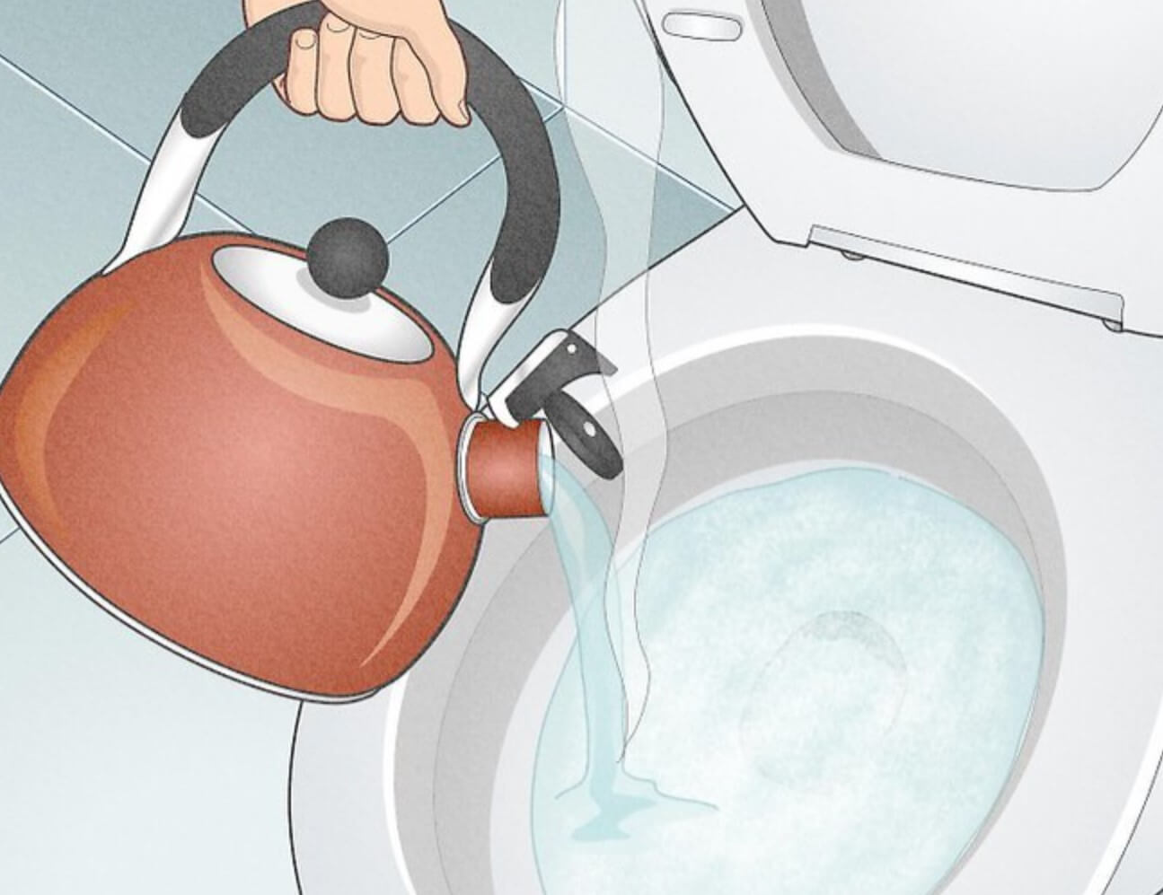 물이 적당한(차를 편하게 마실 수 있는 정도, 따뜻한 물) 온도로 식었다면 물을 변기에 붓습니다. 부을 때에는 허리 높이에서 부어주는게 낙차의 힘으로 변기를 뚫는데 도움이 됩니다.